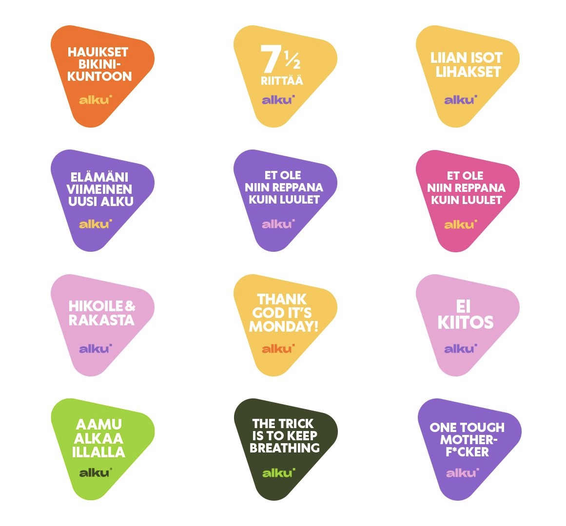 Koristele kaikki paikat iloisilla inspiraatiotarroilla! Tee kaverit kateellisiksi ja tapetoi läppäri, vesipullo ja jääkaapin ovi mietelauseilla. Näin et pääse unohtamaan, että et ole niin reppana kuin luulet ja että aamu alkaa illalla. Hinta sisältää A4 tarra-arkin (20 tarraa), tulevan vuoden asenteen sekä postikulut. Katso kaikki tekstit tuotekuvista. Tarrat lähetetään huomaamattomassa kirjekuoressa. 😁